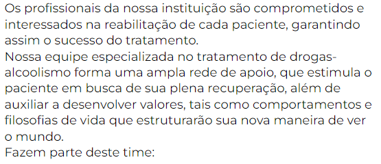 Nossa equipe é especializada e preparada para auxiliar em todo o processo da internação.
